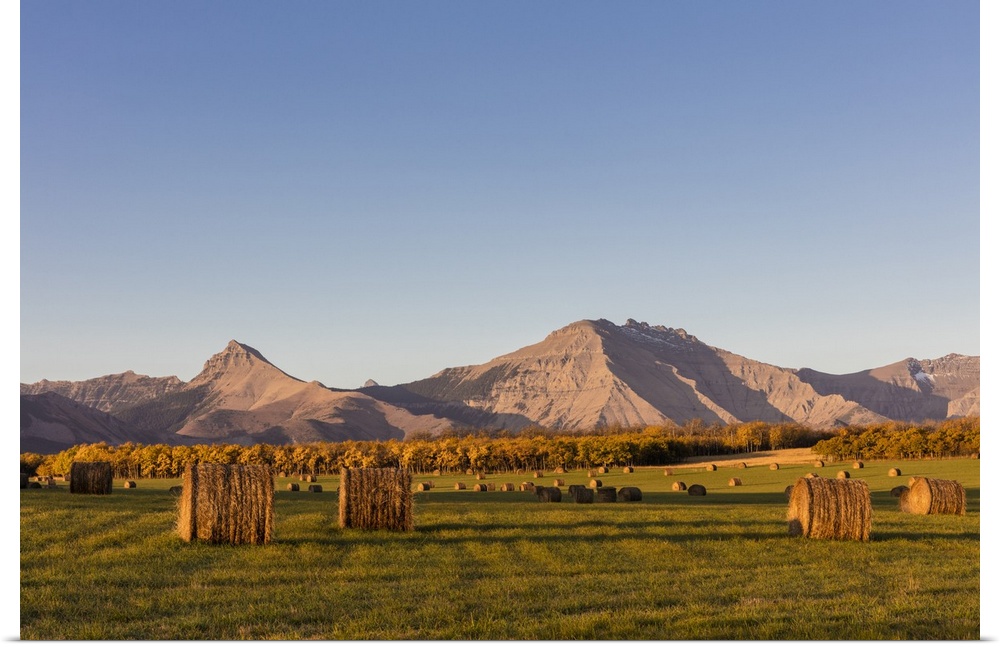 <p>Hay bales and aspen groves in autumn along the Front Range of the Rocky Mountains near Waterton Lakes National Park, Alberta, Canada</p>