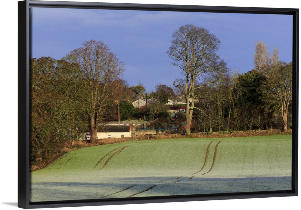 <p>Frost covered farmland, Marlfield Village, County Tipperary, Republic of Ireland, Europe</p>
