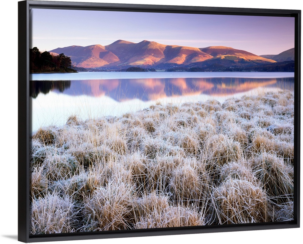 <p>Frosted Grasses And Skiddaw Reflecting In Derwent Water, Lake District National Park, Cumbria, England</p>