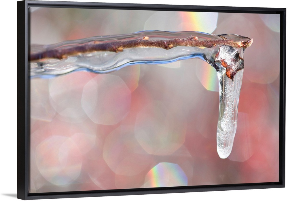 <p>Frozen icicle on the edge of a branch.</p>