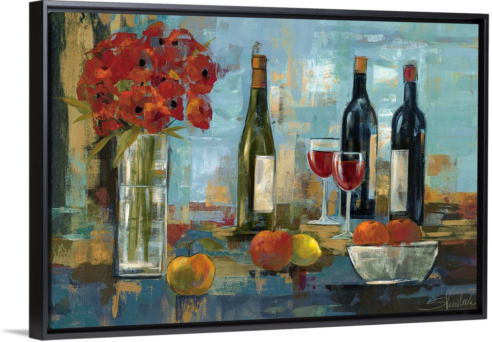 Art Transitional Restaurant Pub and Bar Wall Art Contemporary Art Florals Wine Painting Silvia Vassileva