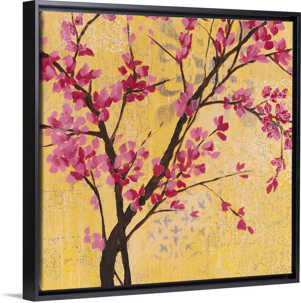 Art Decorative Art Florals Cherry Blossom Jennifer Goldberger Painting Yellow Wall Art