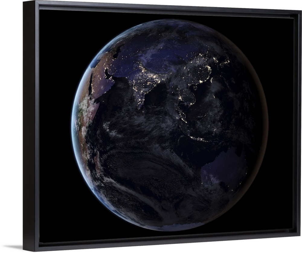 <p>Full Earth showing city lights of Asia at night.</p>