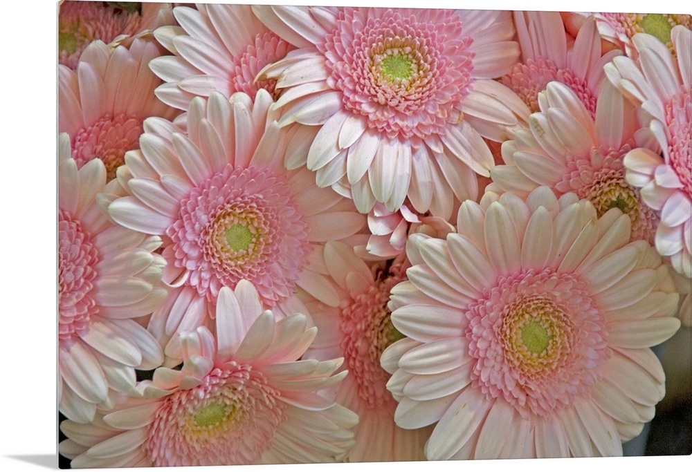 <p>Full frame of pink gerbera daisies at the Bloemenmarket</p>