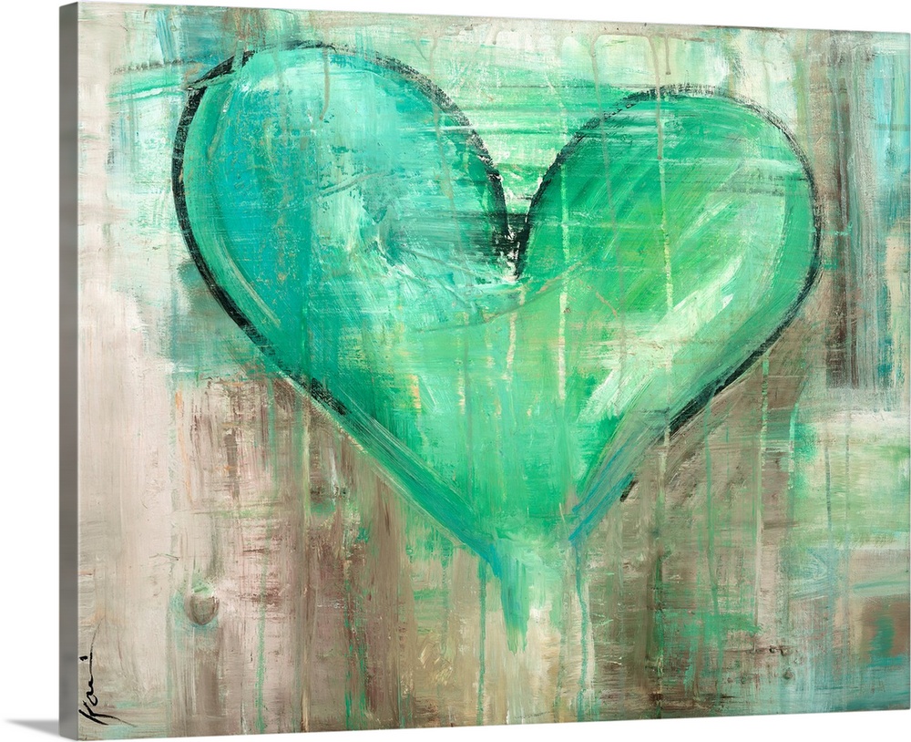 <p>Full of warmth and emotion, this heart artwork is shaped by varying green brush strokes and paint drips.</p>