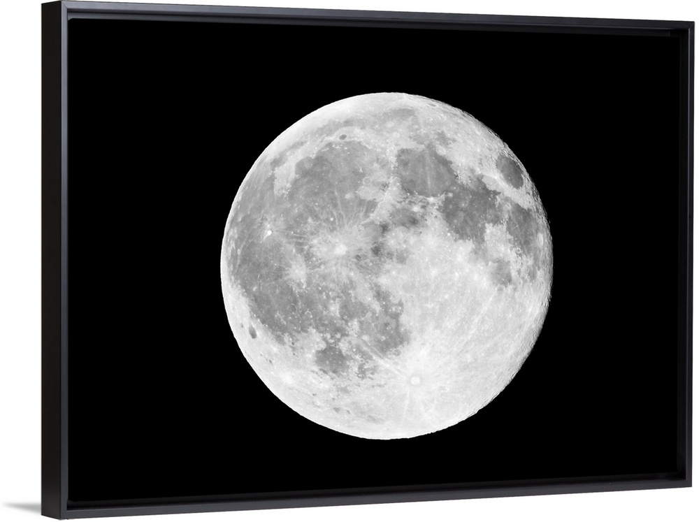 <p>This horizontal wall art shows a photograph of the moon against a dark, starless night sky.</p>