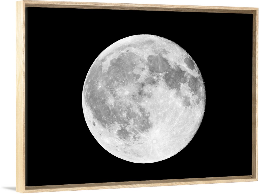 <p>This horizontal wall art shows a photograph of the moon against a dark, starless night sky.</p>
