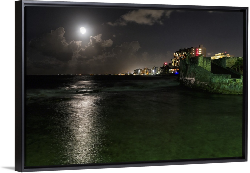<p>Night Scenic View of Ocean Front Buildings of Condado and Fort</p>