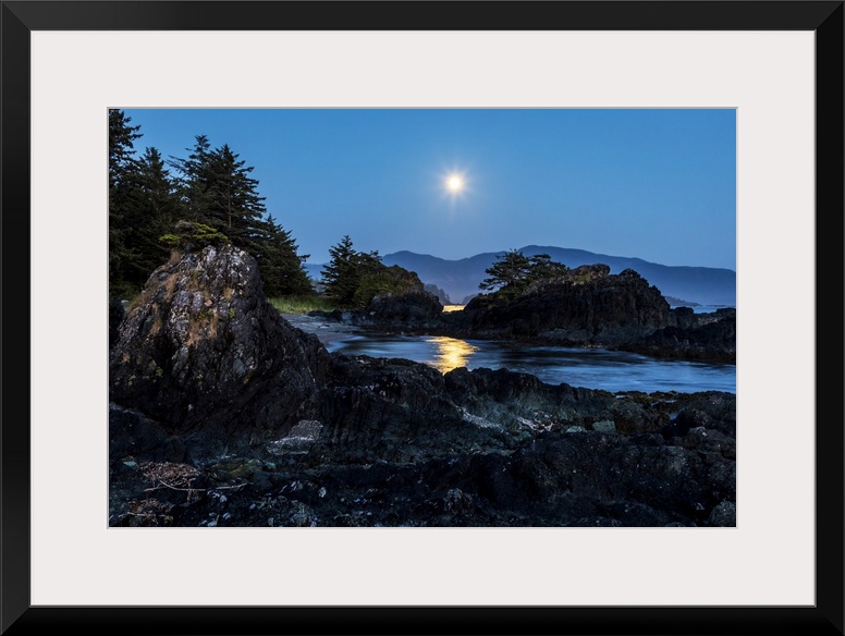 <p>A full moon rises over Nootka Island, Nuchatlitz Provincial Park; British Columbia, Canada</p>