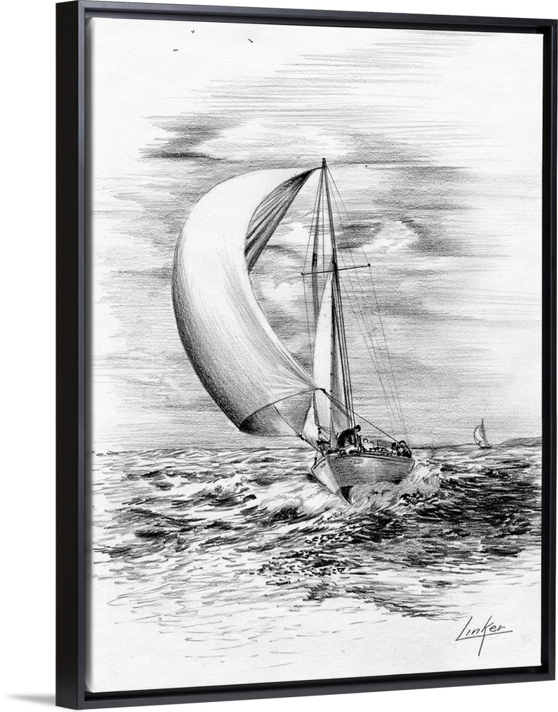 <p>Drawing of sailboat at full sail.</p>