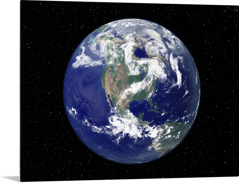 <p>Photograph of the Earth as seen from space, where the continent and weather patterns are clearly visible, on a backdrop of stars.</p>
