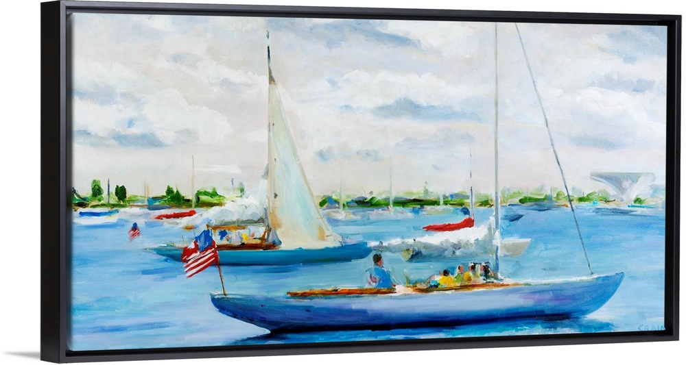 Art Coastal Blue Wall Art Contemporary Art Curt Crain Painting Sports Sailing Transportation Boat Sailboat
