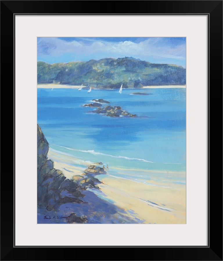 <p>Contemporary painting of sailboats on the water off the English coast.</p>