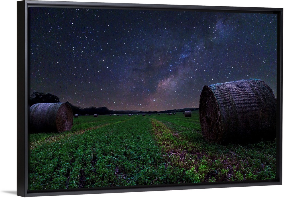<p>Hay field in Nebraska under the beautiful night sky, with the Milky Way visible.</p>