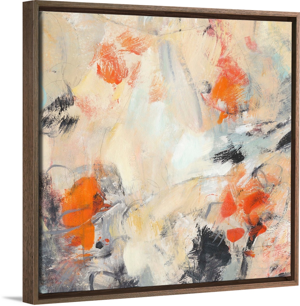 <p>Contemporary abstract painting in various colors like muted orange and bright orange-red.</p>