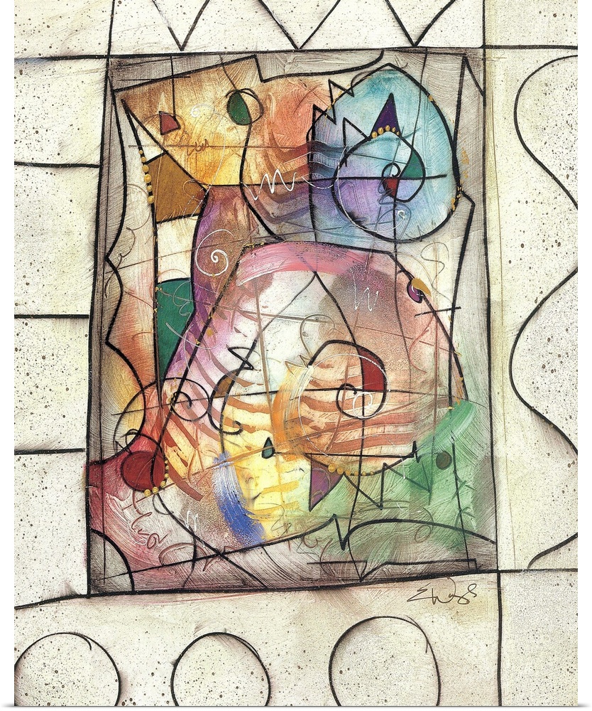 <p>Abstract shapes in vibrant colors framed by a natural color border.</p>