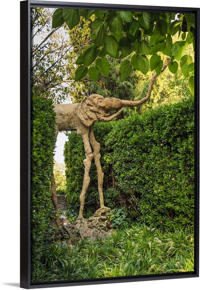 <p>Gala Dali Castle Museum, elephant statue in garden, medieval home museum of Salvador Dali, Pubol, Baix Emporda, Girona, Catalonia, Spain, Europe</p>