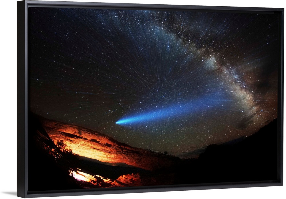 <p>A comet and the Milky Way visible in the night sky over Arches National Park.</p>
