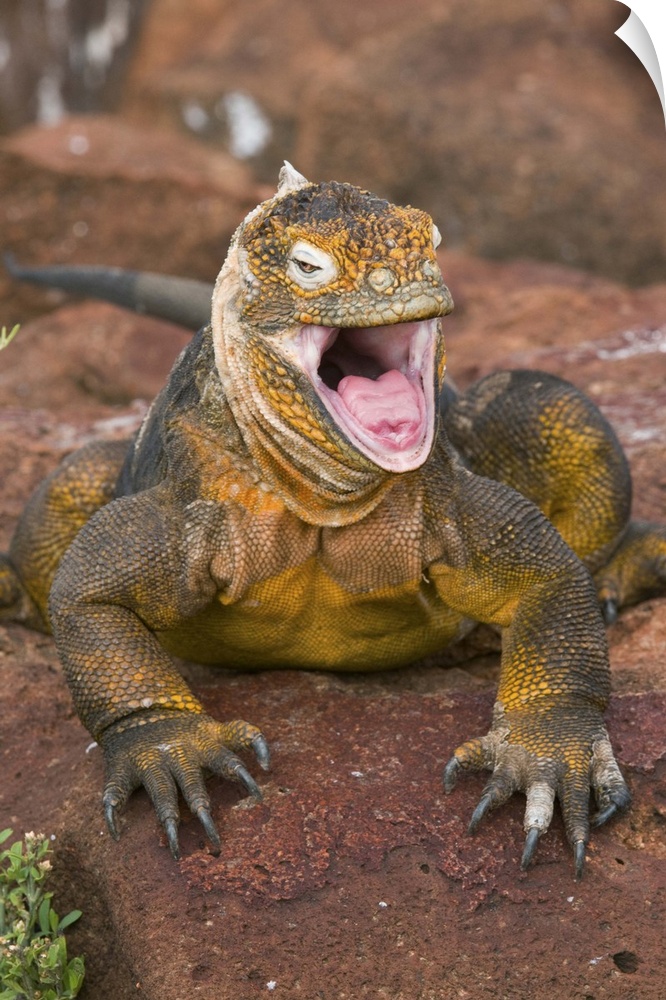 <p>land iguana (galapagos) Conolophus subcristatus, headshot,yawning, reptile, galapagos islands,</p>