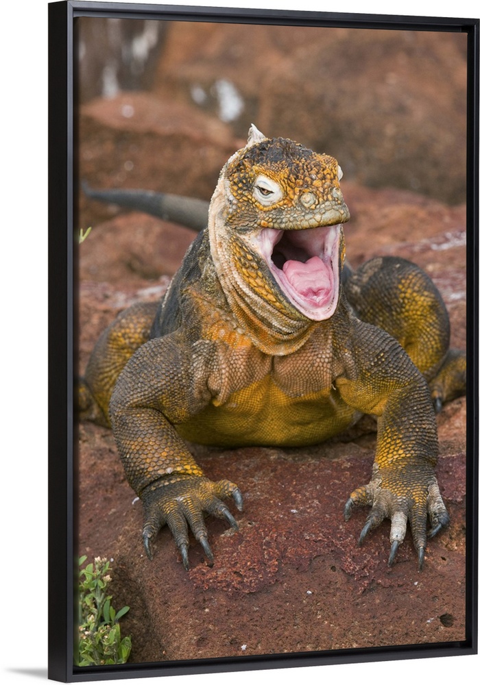 <p>land iguana (galapagos) Conolophus subcristatus, headshot,yawning, reptile, galapagos islands,</p>