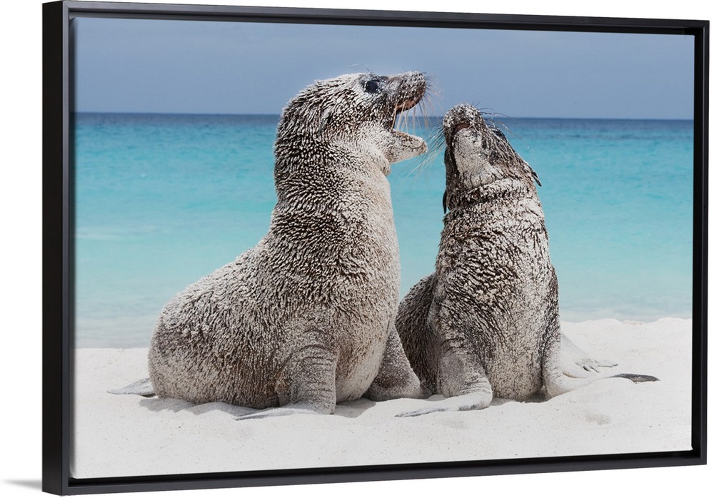 <p>Galapagos Sea Lion pups, (Zalophus wollebaeki), Playing, Espanola Island, Galapagos islands, Ecuador</p>