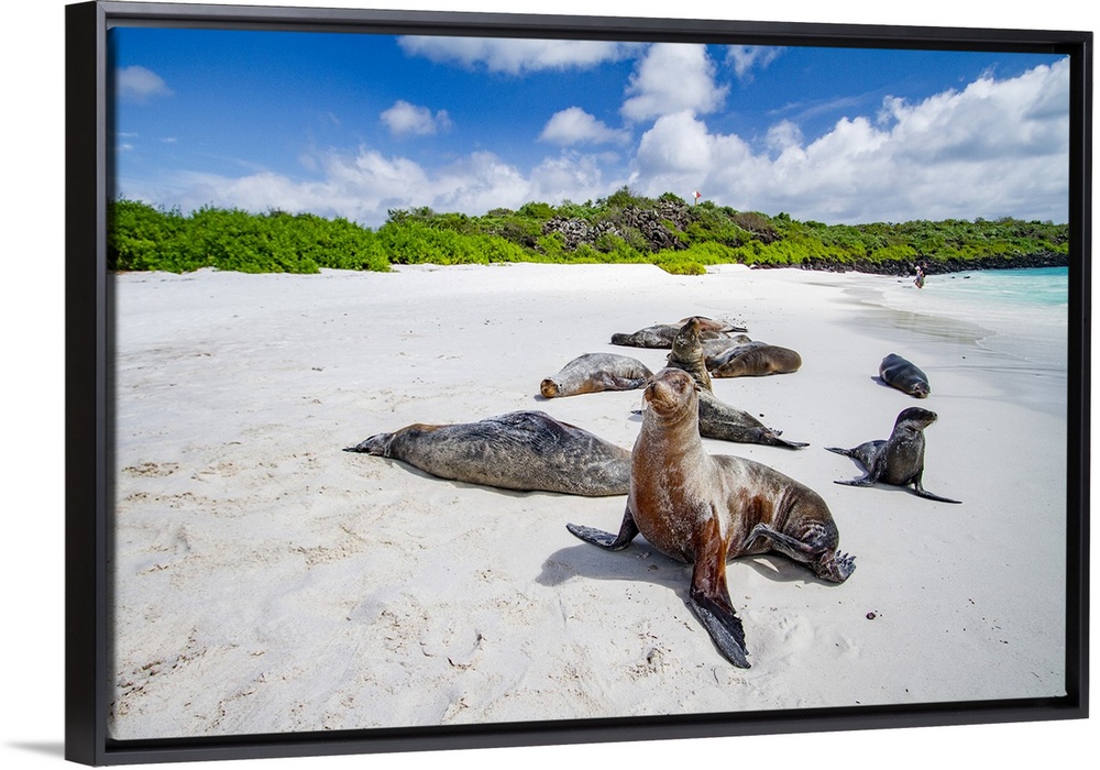<p>Galapagos sea lions (Zalophus wollebaeki) hauled out on Gardner Beach, Espanola Island in the Galapagos Islands, UNESCO World Heritage Site, Ecuador, South America</p>