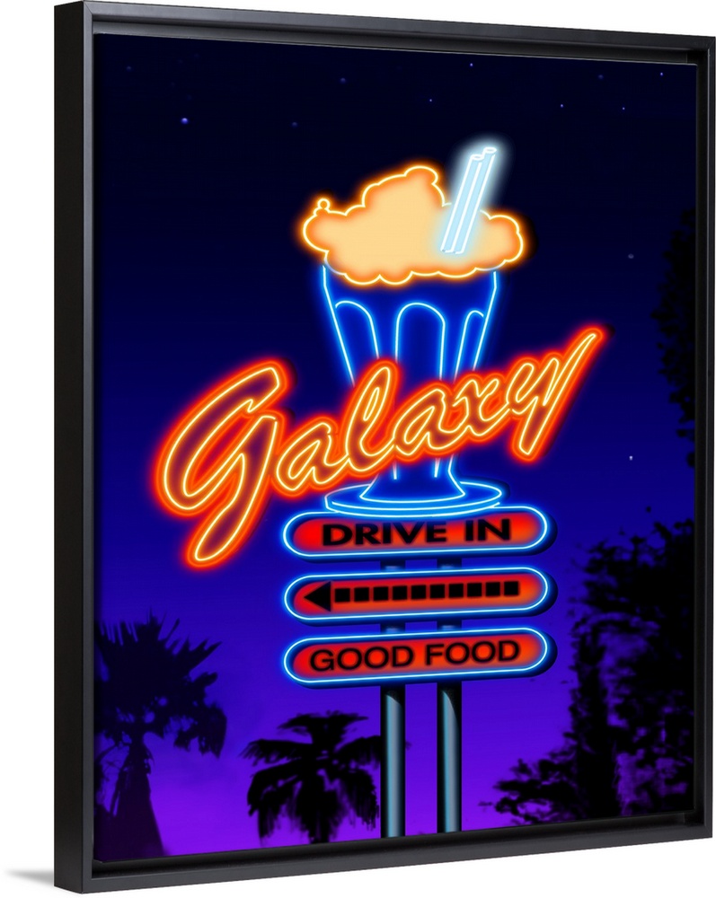 <p>Digital artwork of the Galaxy Drive-In restaurant sign in glowing neon.</p>