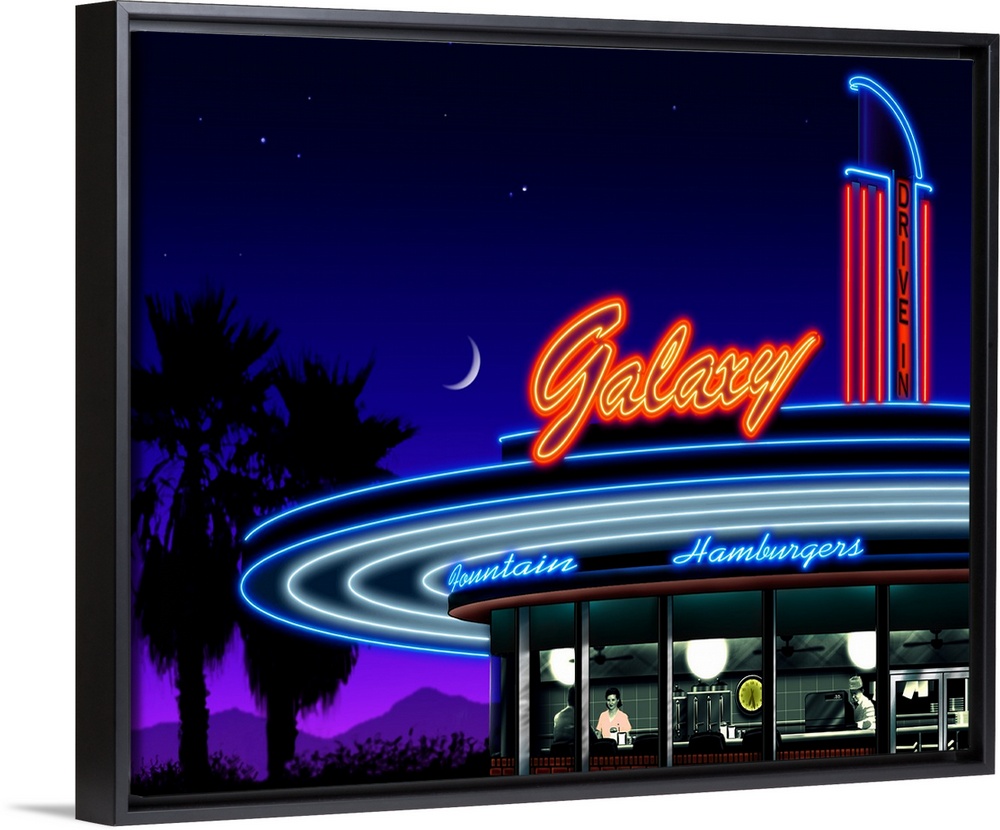 <p>Digital art painting of the Galaxy Drive-In restaurant sign in glowing neon.</p>
