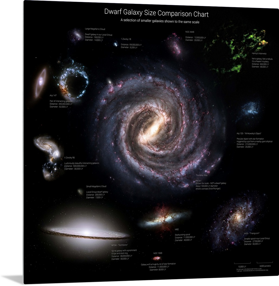 <p>Galaxy sizes compared to IC 1101, the largest known galaxy.</p>