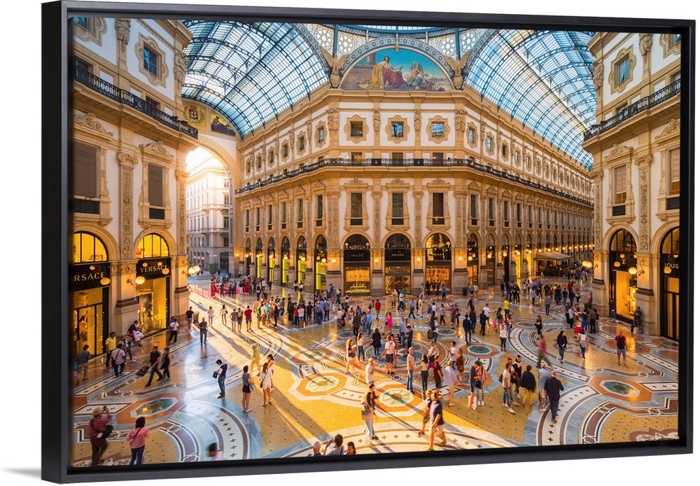 <p>Galleria Vittorio Emanuele II, Milan, Lombardy, Italy. Tourists walking in the world's oldest shopping mall.</p>