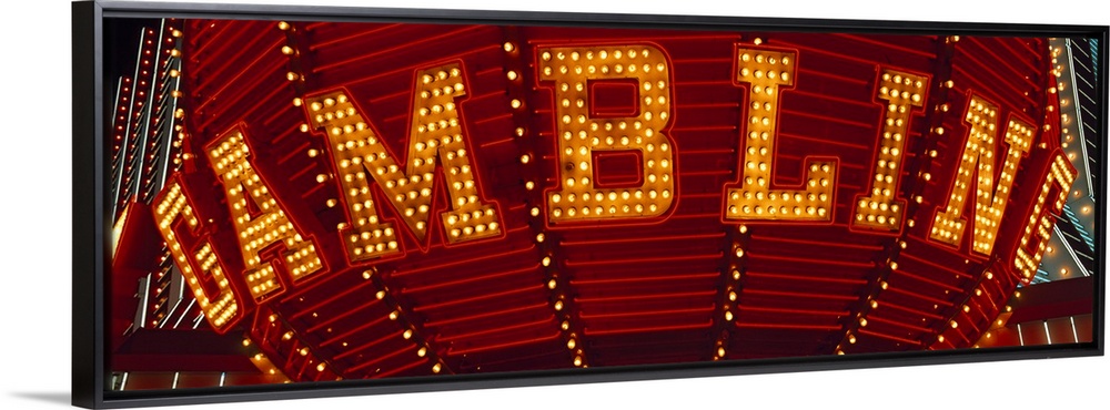 <p>Up-close panoramic photograph of neon sign on the "Sin City" strip.</p>