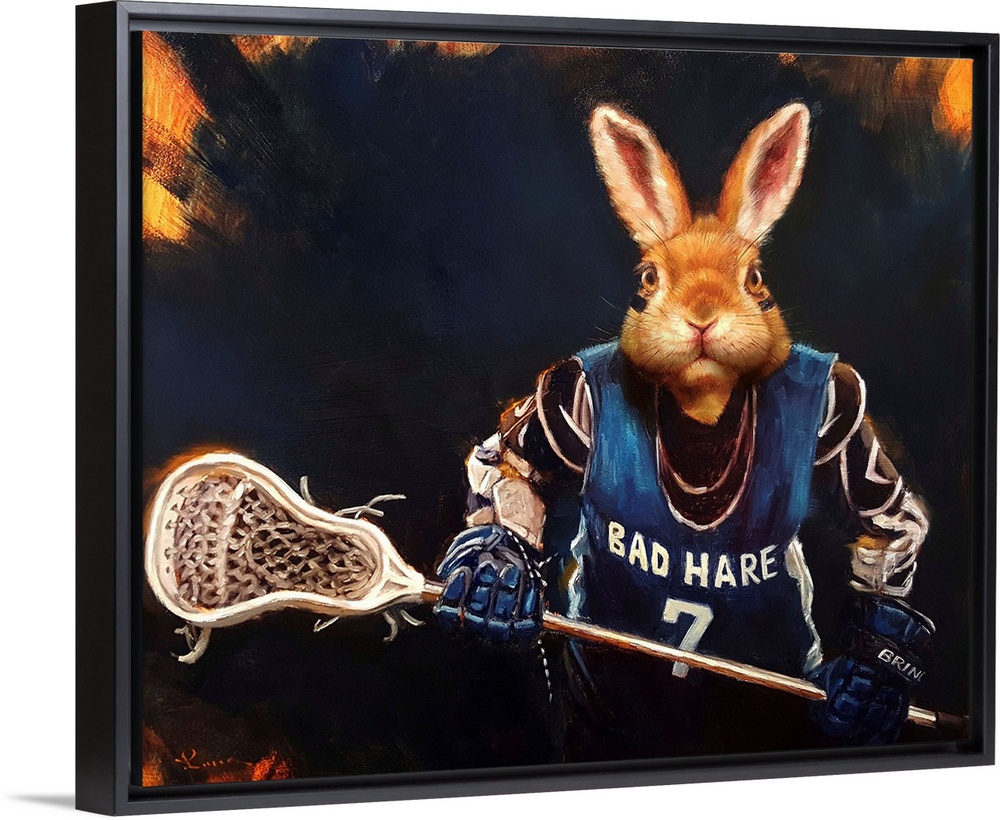 Art Health Club and Home Gym Art Lucia Heffernan Painting Sports Lacrosse Surrealism Wildlife Rabbit