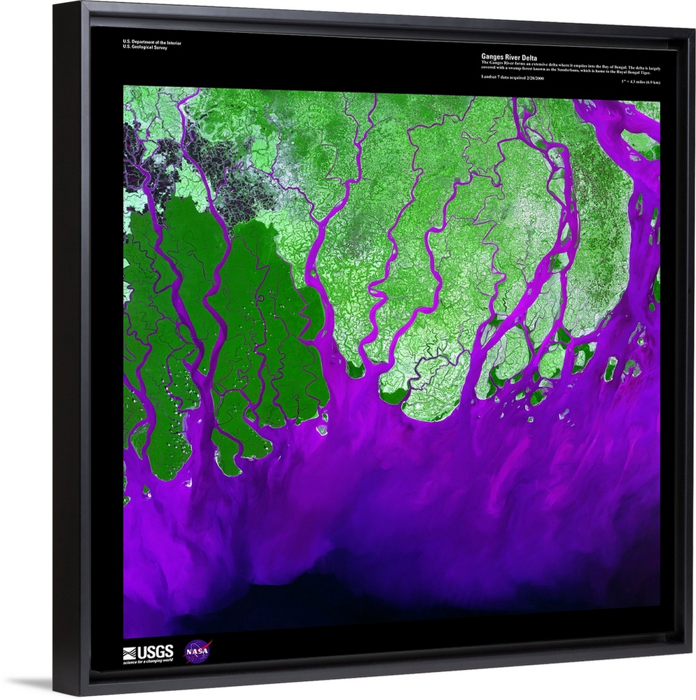 <p>The Ganges River forms an extensive delta where it empties into the Bay of Bengal. The delta is largely covered with a swamp forest known as the Sunderbans, which is home to the Royal Bengal Tiger. January 1, 1999.</p>