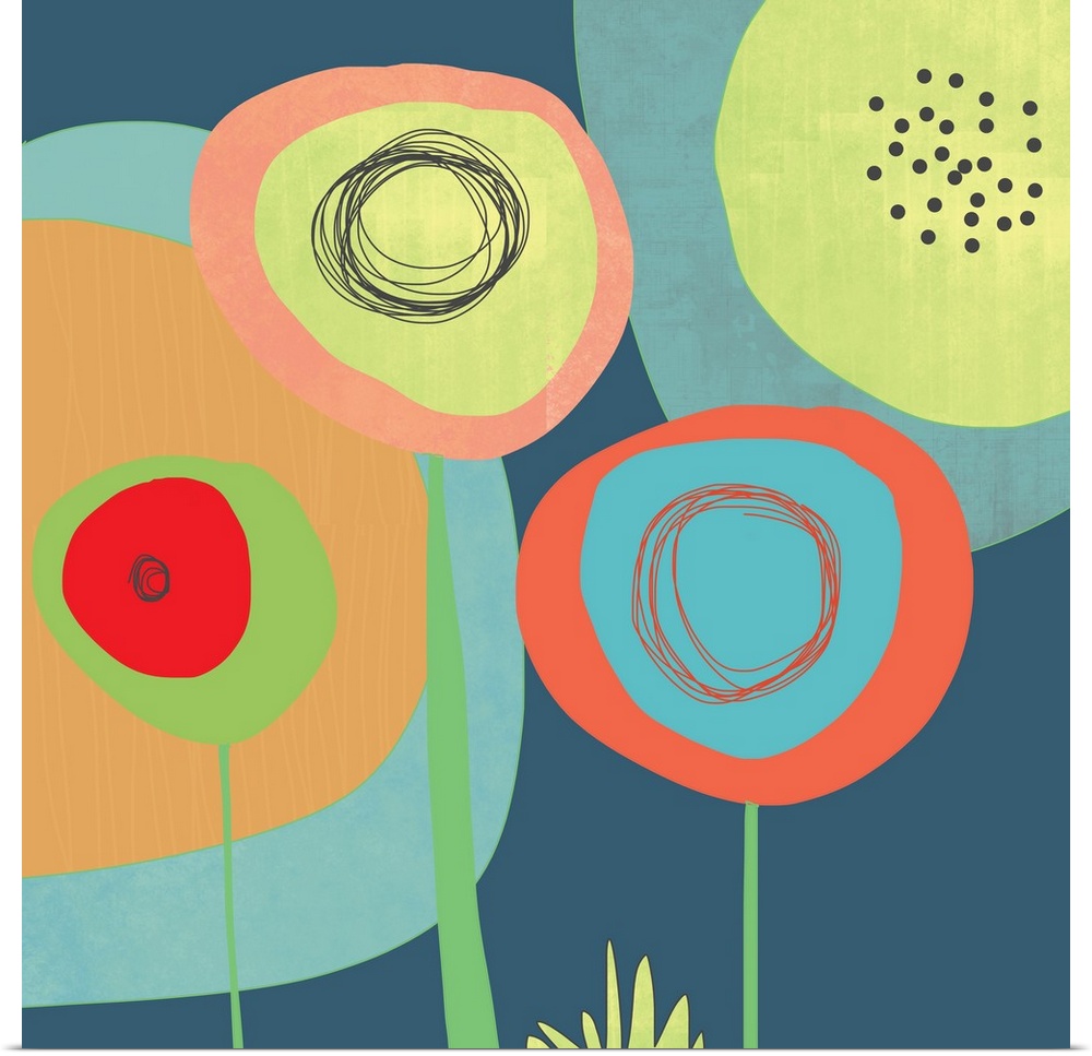 <p>Garden circles in calm colors like aqua, yellow, orange and pink. These pop piece would look great in a family room or any active area like a kitchen or lobby.</p>