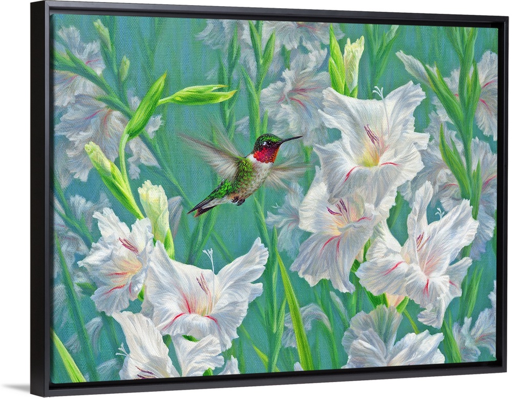 Art Traditional Contemporary Art Plants and Flowers Wildlife Florals Green Wall Art Painting Wildlife Bird Hummingbird