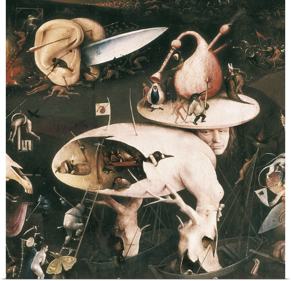 <p>Hieronymus Bosch (1450 - 1516) was an Early Netherlandish painter of the fifteenth and sixteenth centuries. Many of his works depict sin and human moral failings. Bosch used images of demons, half-human animals and machines to evoke fear and confusion to portray the evil of man. His works contain complex, highly original, imaginative, and dense use of symbolic figures and iconography, some of which was obscure even in his own time.</p>