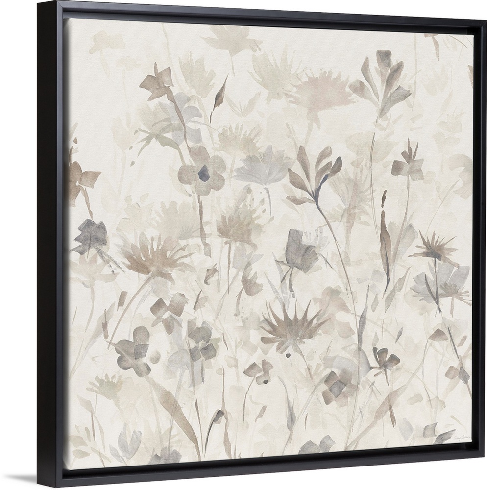 <p>Square abstract watercolor painting of neutral and gray toned flower silhouettes.</p>