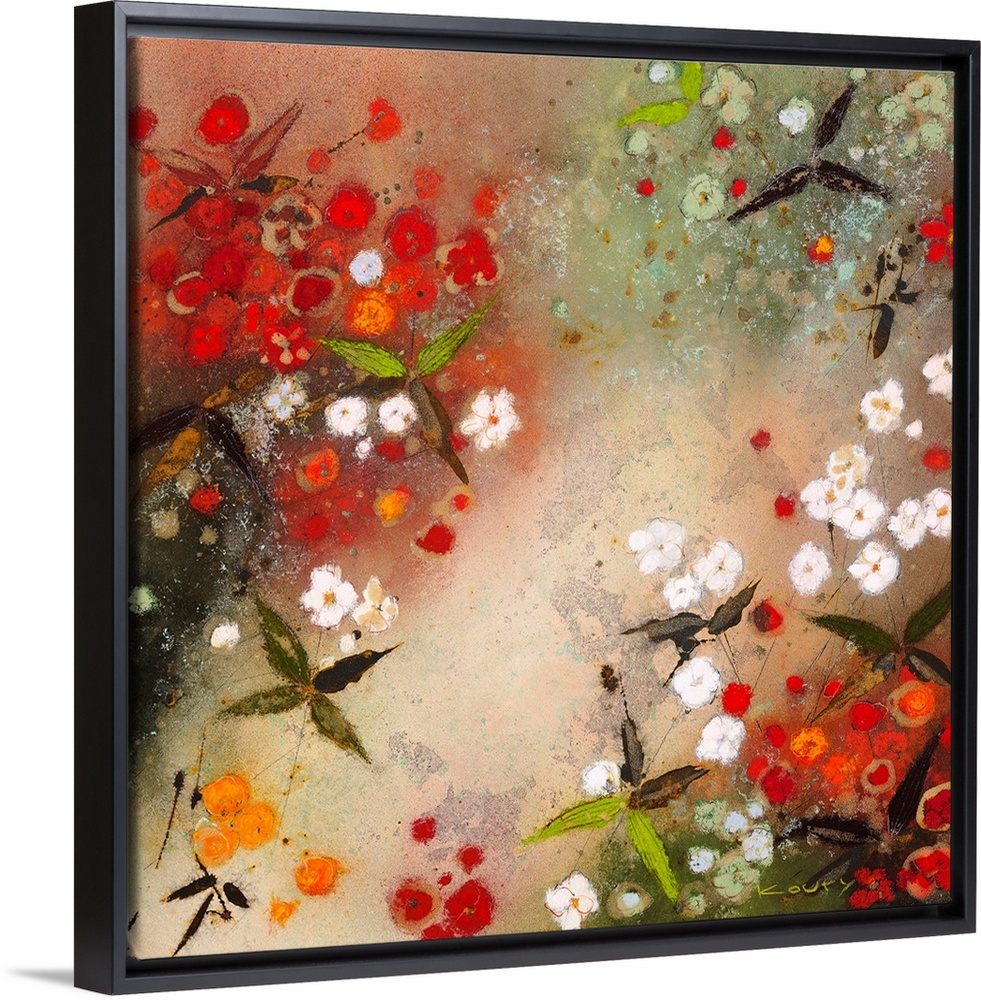 <p>Contemporary painting of vibrant red flowers mixed with bright white flowers.</p>