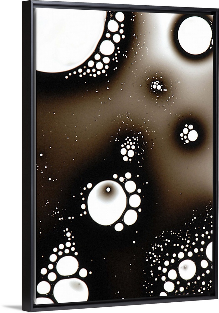 <p>Gas bubbles in oil. Different sized bubbles of gas in a thin film of oil.</p>