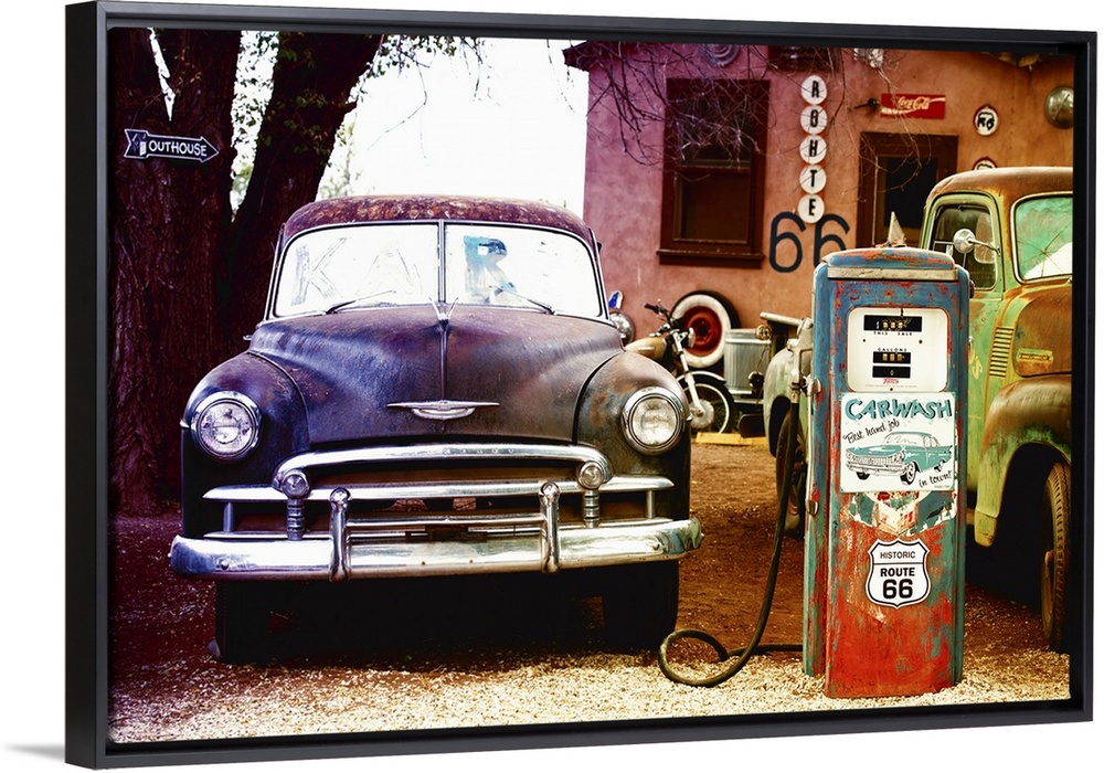 <p>A classic car fills up at a vintage fueling station on Route 66.</p>