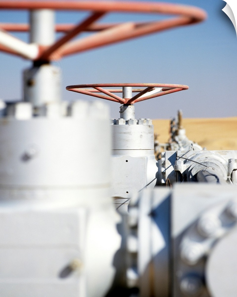 <p>Gas well valves in a gas pipeline. Photographed in the United Arab Emirates.</p>