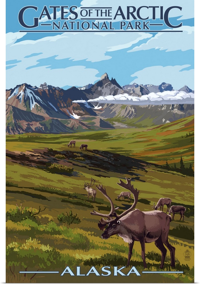 Art Mountains Lantern Press United States Alaska Moose and Elk