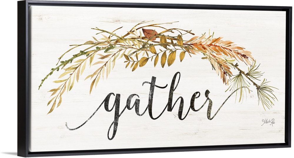 <p>"Gather" surround by a wreath of fall foliage.</p>