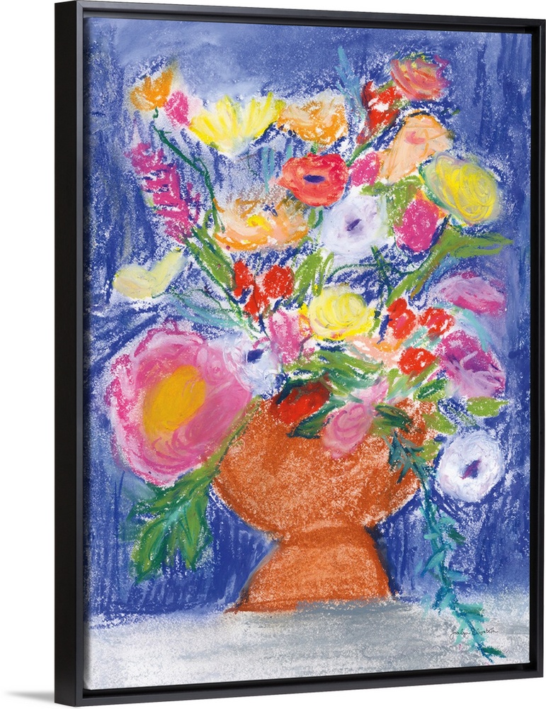 Art Blue Wall Art Contemporary Art Full Bloom Drawing Jocelyn Elizabeth Florals