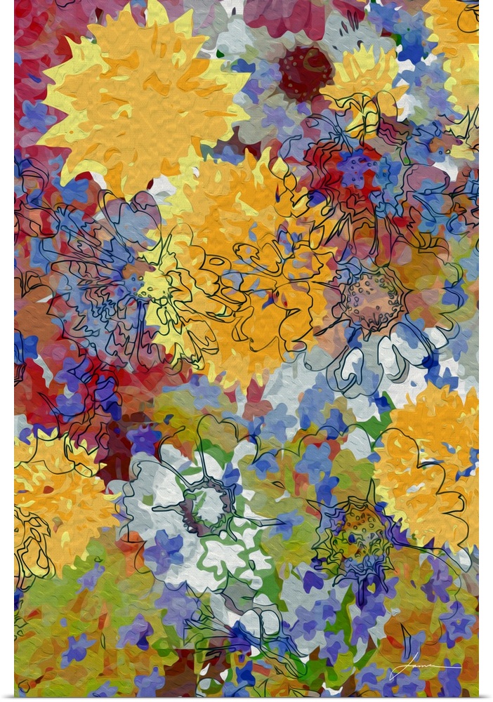 <p>A joyous collage of brightly painted flowers.</p>