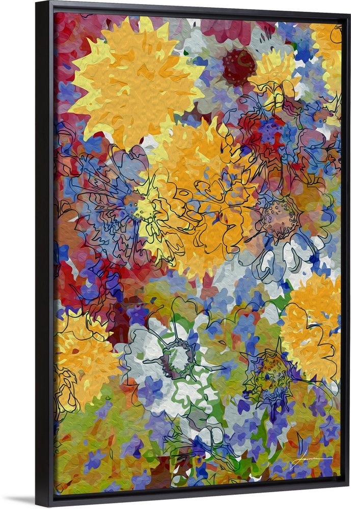 <p>A joyous collage of brightly painted flowers.</p>