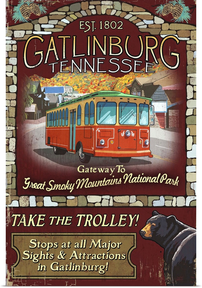 <p>Retro stylized art poster of Trolley in a city street.</p>