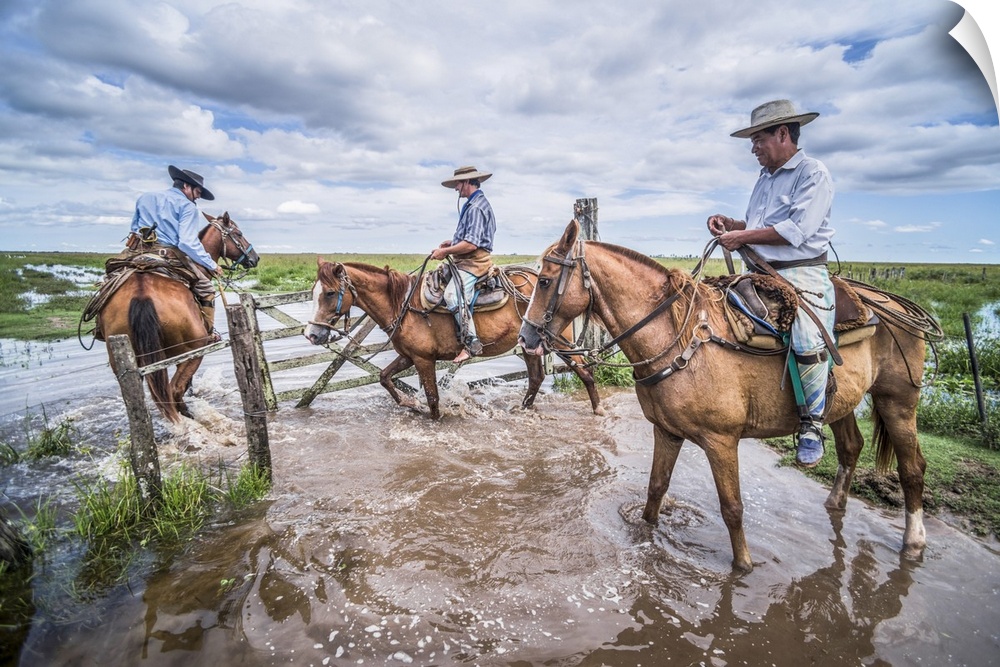<p>Gauchos on a traditional Argentinian cattle farm, Estancia San Juan de Poriahu, Ibera Wetlands, Corrientes Province, Argentina, South America</p>