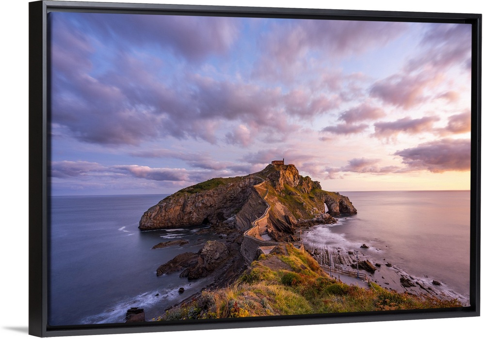 <p>Gaztelugatxe, Biscay, Basque Country, Spain. View of the islet and the hermitage at sunrise</p>
