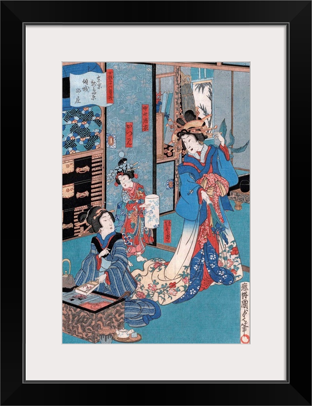 <p>Utagawa Kunisada II (Japanese, 1823-1880), Geisha with Hibachi, ukiyo-e woodblock print, ca. 1860. Oban tat-e size. Private collection.</p>